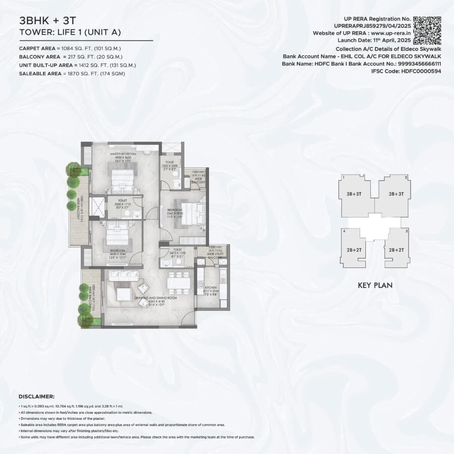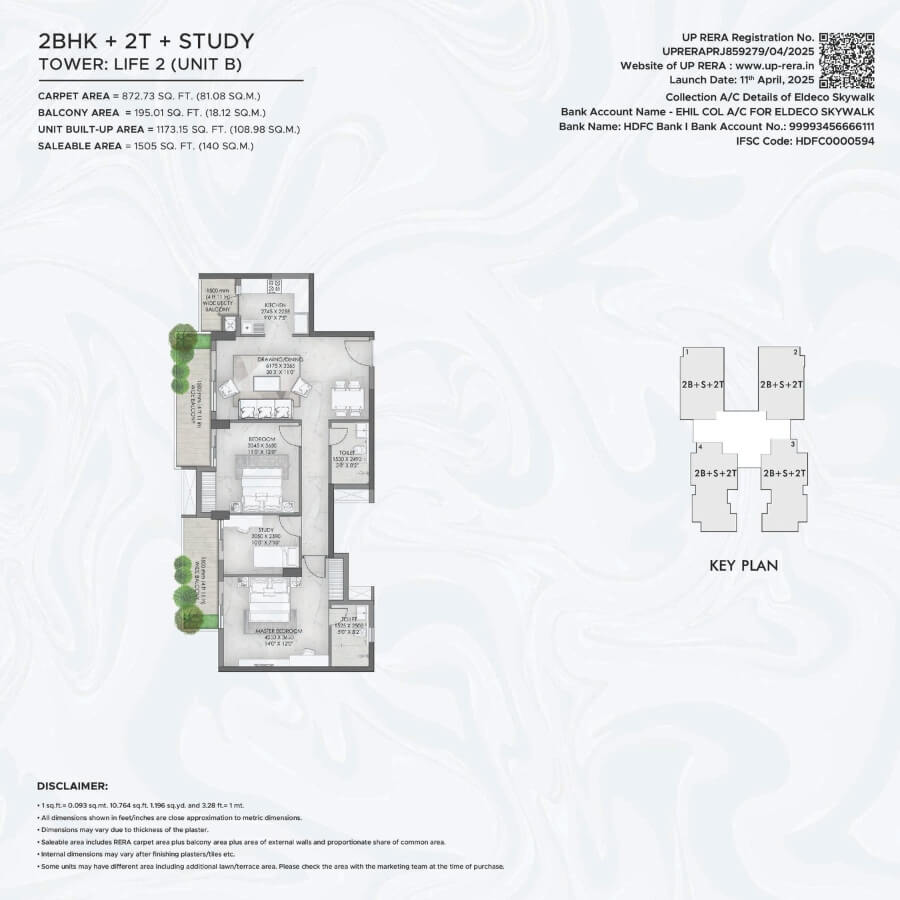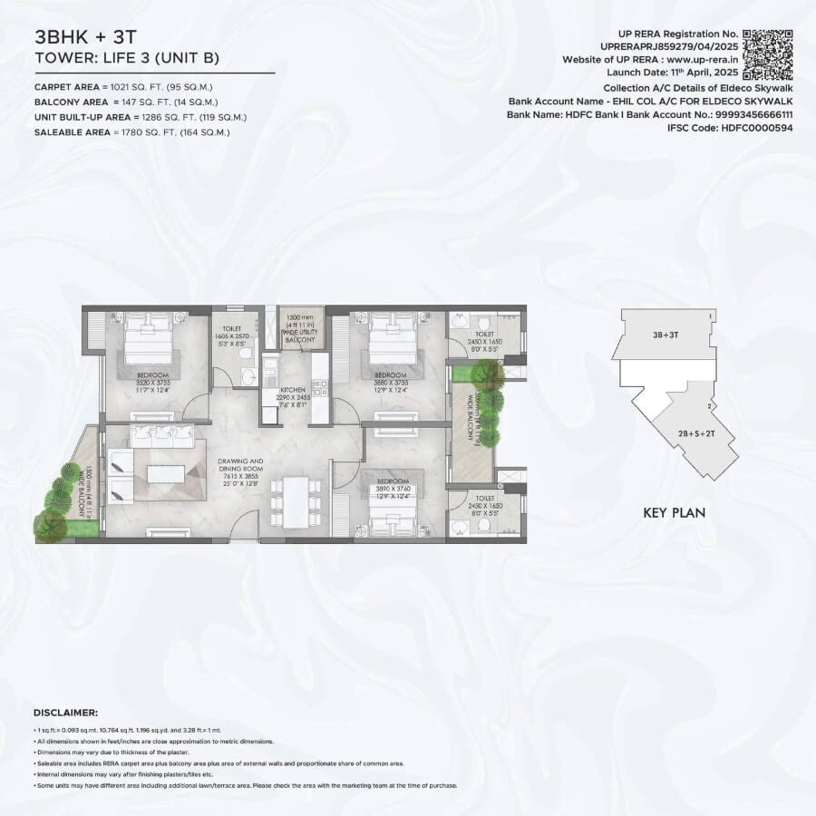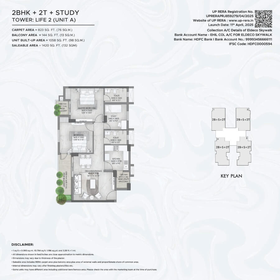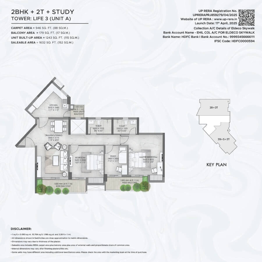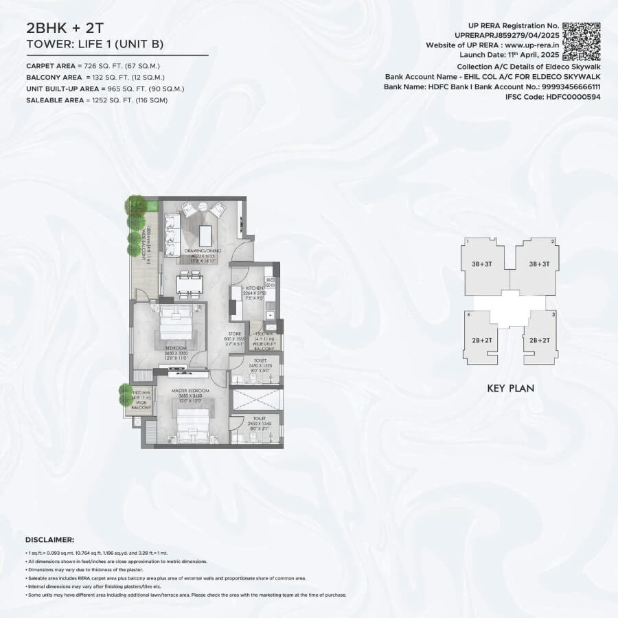 Live beyond boundaries and explore a life surrounded by serene views, where nature sings you a lullaby and you are greeted every day by the freshest hues. A place where every corner is crafted with perfection. Introducing Eldeco Skywalk, part of the inhabited township of Eldeco City, located in the heart of Lucknow. It comprises of 4 towers offering 2/3 BR Apartments, blessed with fresh air and filled with natural light. The project introduces a unique feature atop Towers Life 1 & 2 - a beautifully landscaped Skywalk, where you can unwind as every sunrise greets you with peace and every evening wraps you in starlit calm.